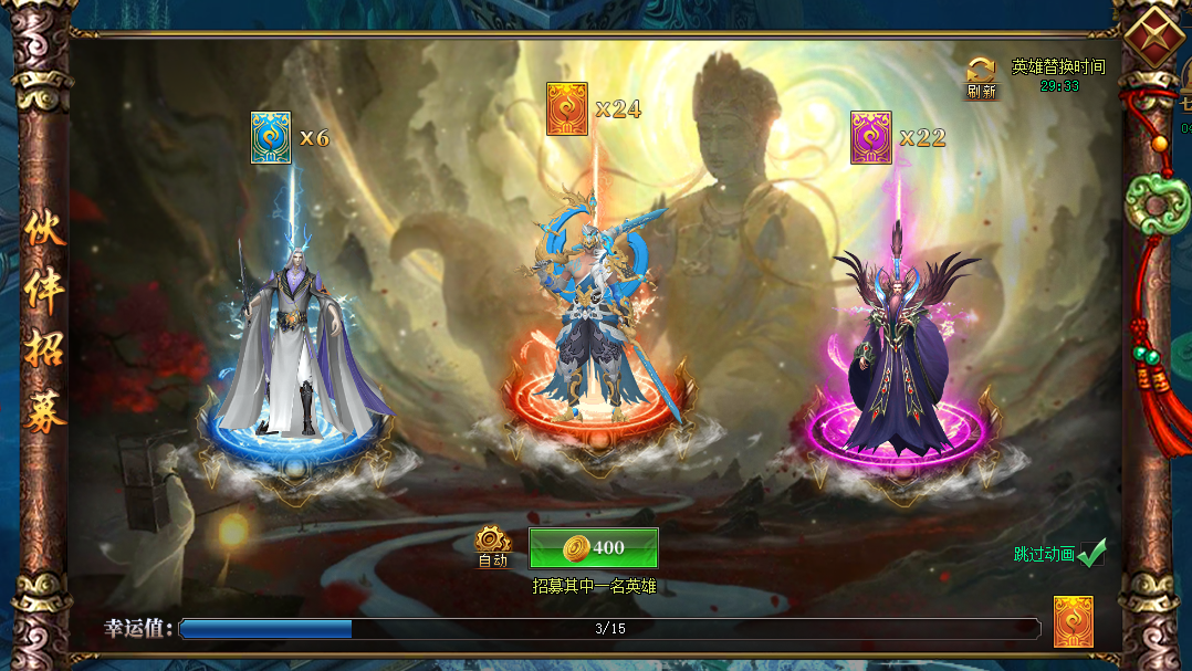 3.招募3次可以获得刷新出来的所有伙伴碎片